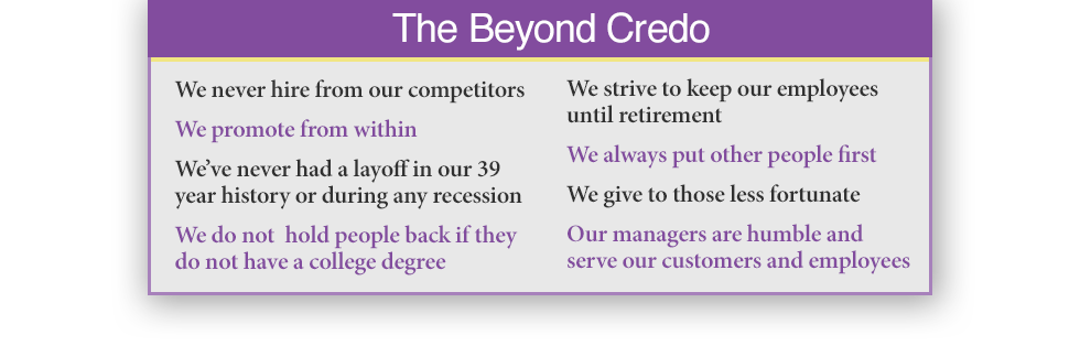 "We have a strong set of business ethics, a philosophy if you will, that sets us apart from our competitors - we call it Our Credo. I feel it’s important you know a little about the company you do business with... These are some of the qualities that set us apart and make coming to work each day a rewarding experience - for both our company and yours." Lou Dinkel / CEO |